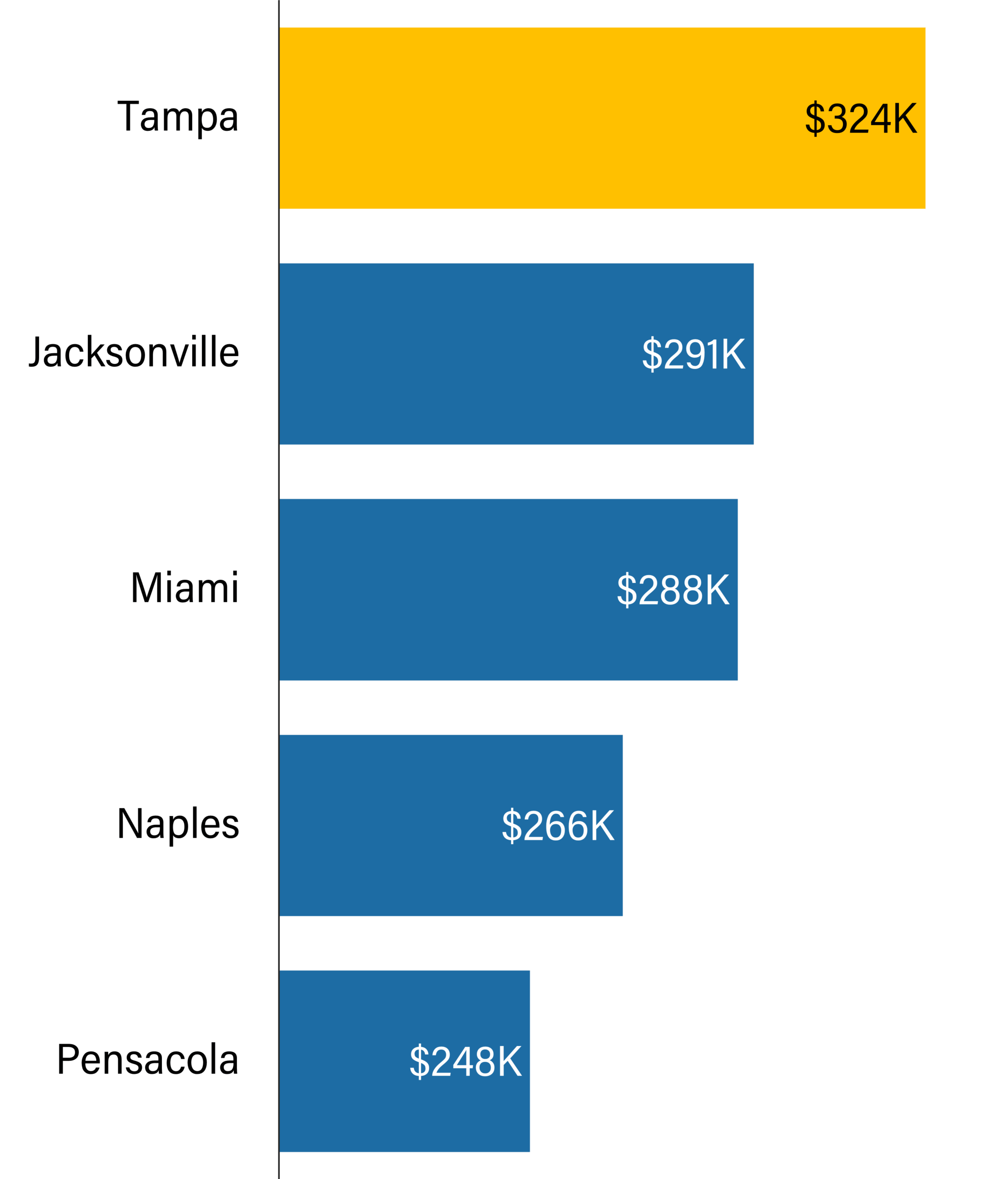 • The $83K difference in average pay between physicians practicing in Ft. Myers and Miami, for example, would, all else being equal, likely translate to millions of dollars less in net worth at the end of their career for Miami-based doctors, given the compounding effect of investments.